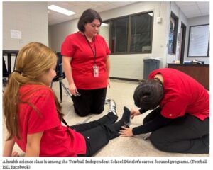 That’s why she’s grateful that her 11th grader Kai can explore a career field at her high school in the Tomball Independent School District, outside Houston. Kai is in the legal studies program, which meets daily at the Tomball Innovation Center, a 70-acre facility that houses programs like aviation maintenance, cybersecurity and app design.