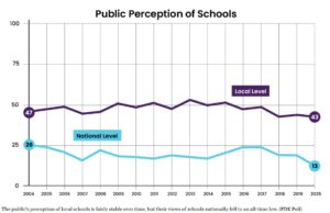 He cautioned against reading too much into the low percentage of Americans giving public schools high marks. Many of the 1,000 poll respondents may not have kids in school. While the average voter might be influenced by politics, public school parents answer questions based on their experiences, he said.